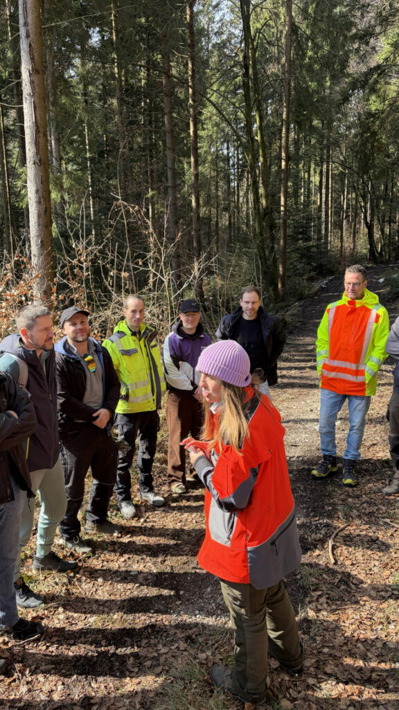 Neben der praktischen Arbeit im Wald erhielten wir fundierte Einblicke in ökologische Zusammenhänge, Waldentwicklung und nachhaltige Forstwirtschaft. Die fachliche Begleitung machte deutlich, wie eng Natur, verantwortungsvolles Handeln und langfristige Zukunftsfähigkeit miteinander verbunden sind. Auch aus menschlicher Perspektive war der Tag ein besonderes Erlebnis. Die körperliche Arbeit, das gemeinsame Verfolgen eines klaren Zieles und der spürbare Teamzusammenhalt stärkten das Wir‑Gefühl nachhaltig. Ein gemeinsames Mittagessen bot anschließend Raum für Austausch, Reflexion und das bewusste Erleben des gemeinsam Erreichten.